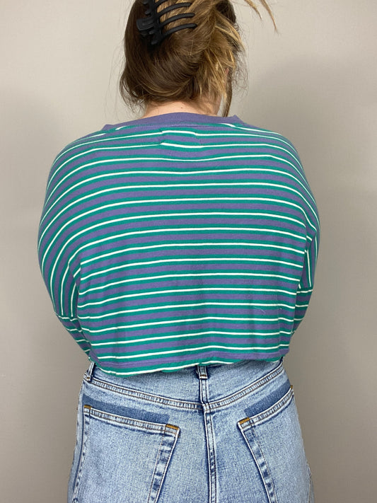 One of a Kind - Purple, Teal + White Cropped Long Sleeve